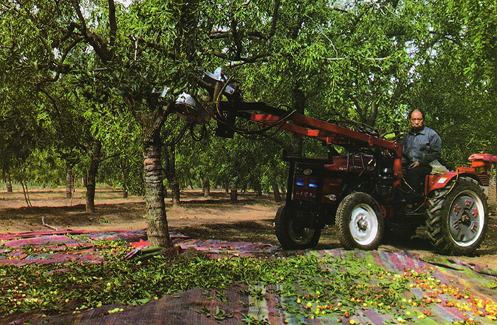 該機(jī)與拖拉機(jī)配套,采用進(jìn)口馬達(dá)驅(qū)動(dòng),主要使用于紅棗、核桃、橄欖、椰子、堅(jiān)果、板栗等果實(shí)的采摘作業(yè),它是一種高效的果實(shí)采收設(shè)備,效率高、易操作,每分鐘可收獲2顆樹(shù)的果實(shí)。