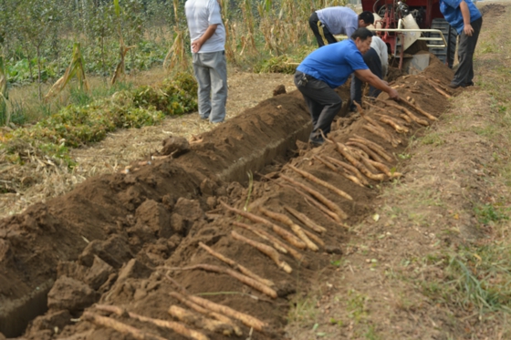 4UZ-1薯類收獲機(jī)收獲大姜作業(yè)